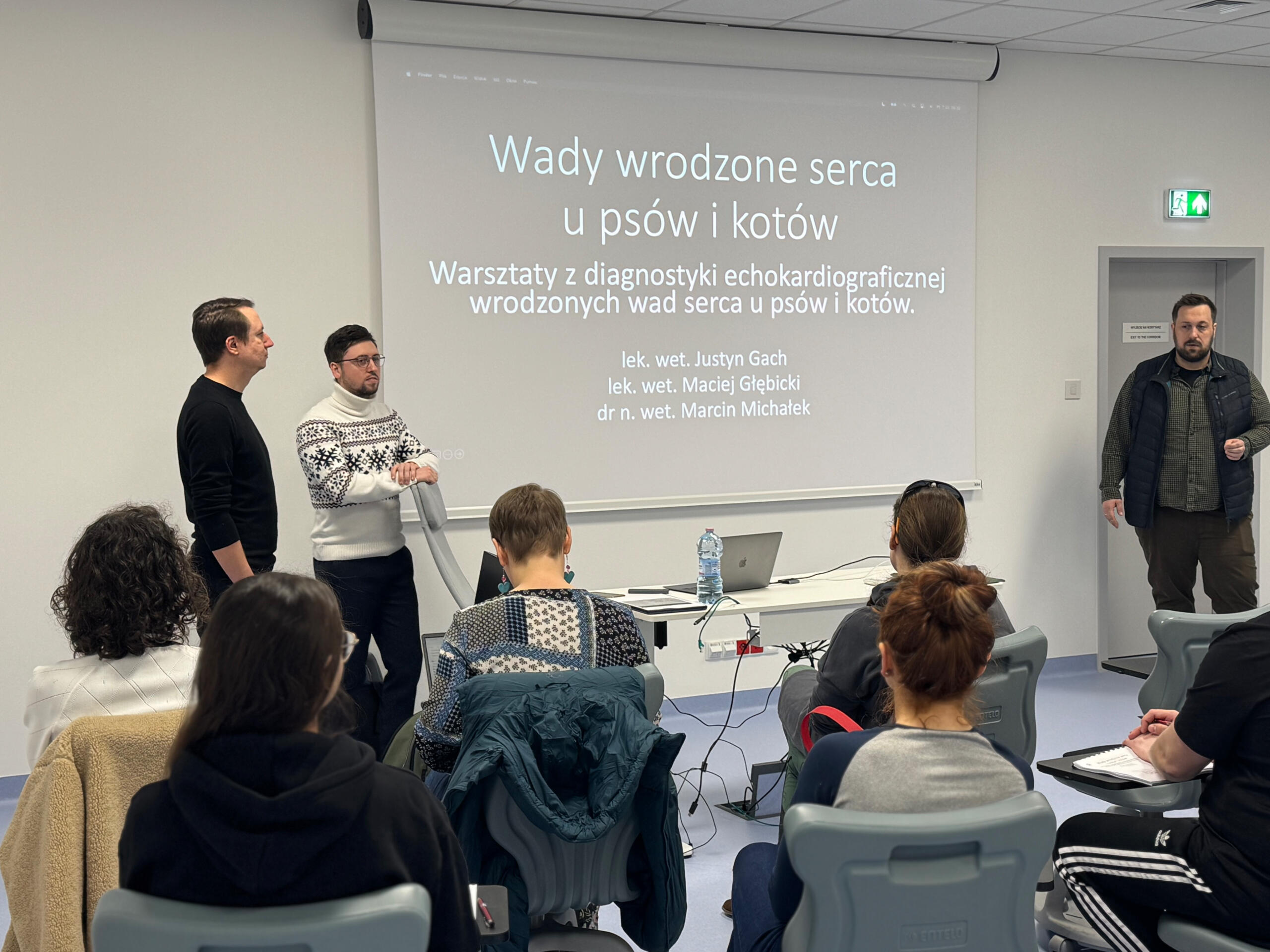 Zapraszamy na trzydniowy, intensywny kurs przeznaczony dla lekarzy weterynarii zainteresowanych tematyką wad wrodzonych serca. Uczestnicy zapoznają się z anatomią, fizjologią i patofizjologią, a także diagnostyką echokardiograficzną najczęściej występujących wad wrodzonych, takich jak PDA, zwężenia ujść tętniczych, ubytków przegrody, wad poduszeczek wsierdzia czy dysplazji zastawek. Program obejmuje zarówno zajęcia teoretyczne, jak i praktyczne ćwiczenia na pacjentach, umożliwiające zdobycie cennych umiejętności klinicznych.Dużym atutem szkolenia jest część praktyczna, na której ćwiczenia odbywają się na pacjentach z wadami wrodzonymi serca. Badanie echokardiograficzne wykonywane jest w pozycji leżącej.