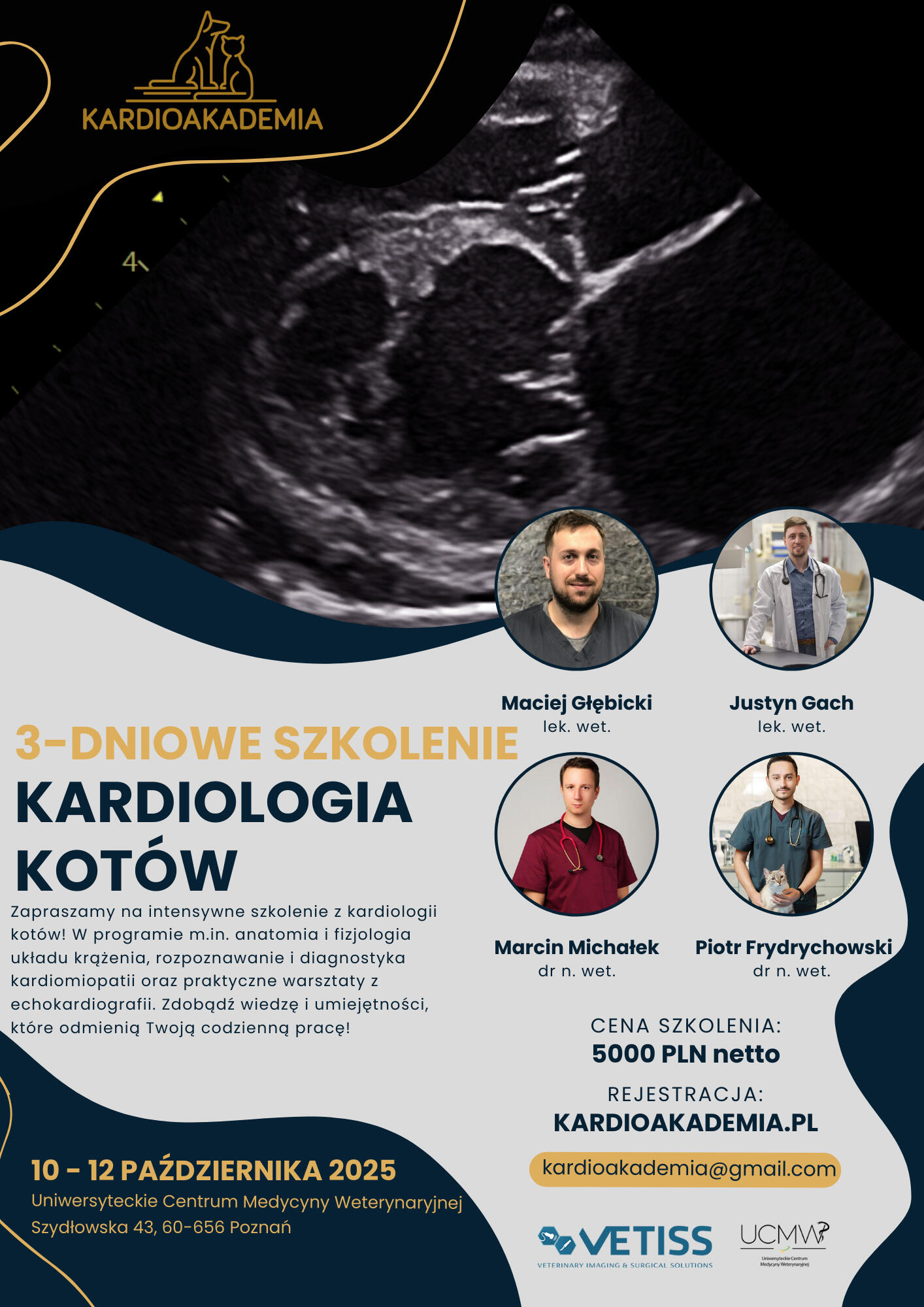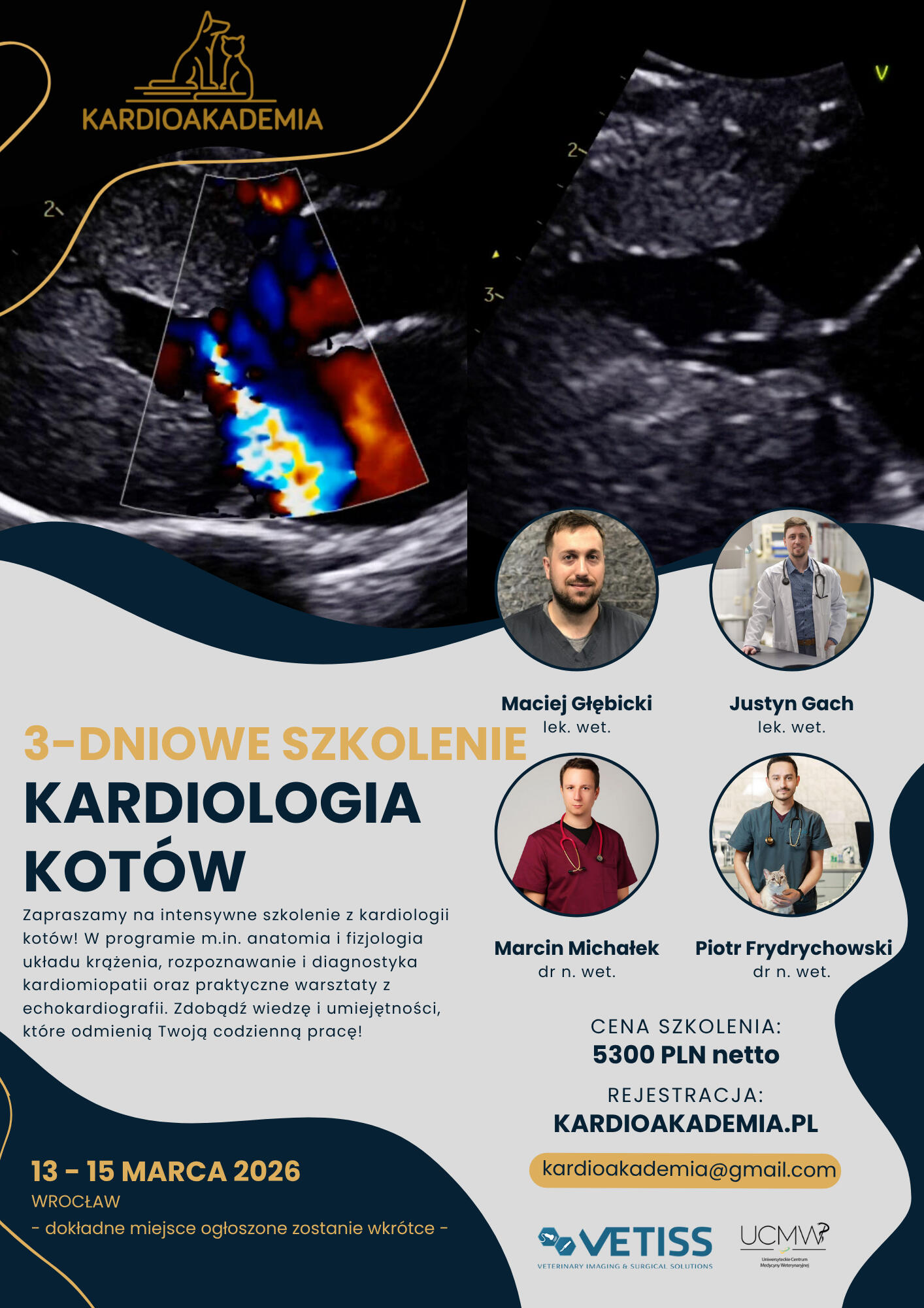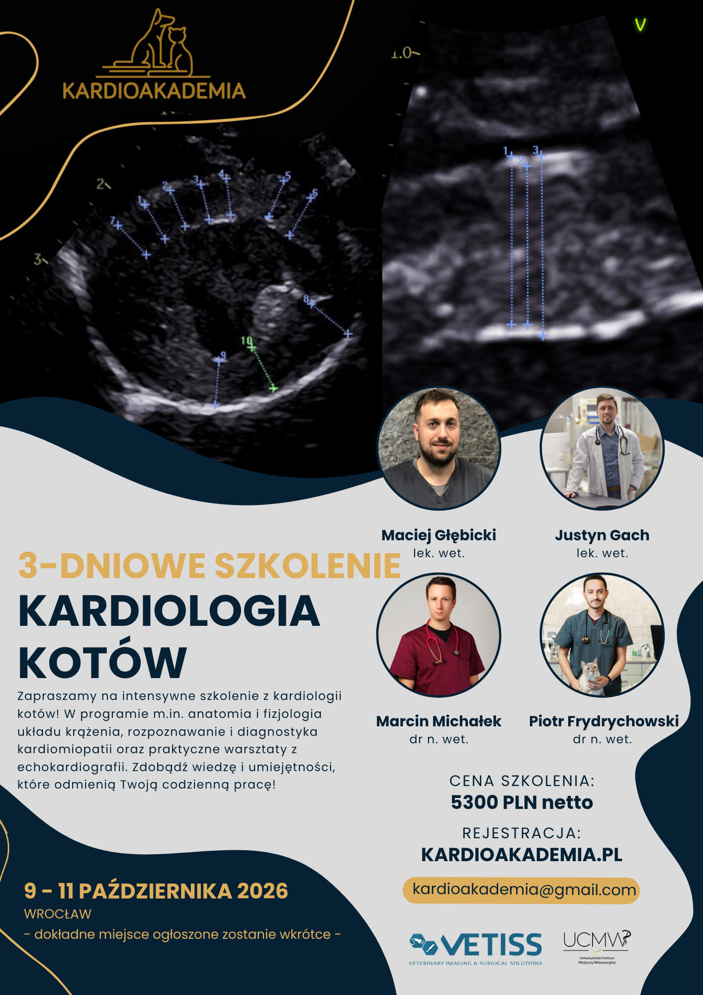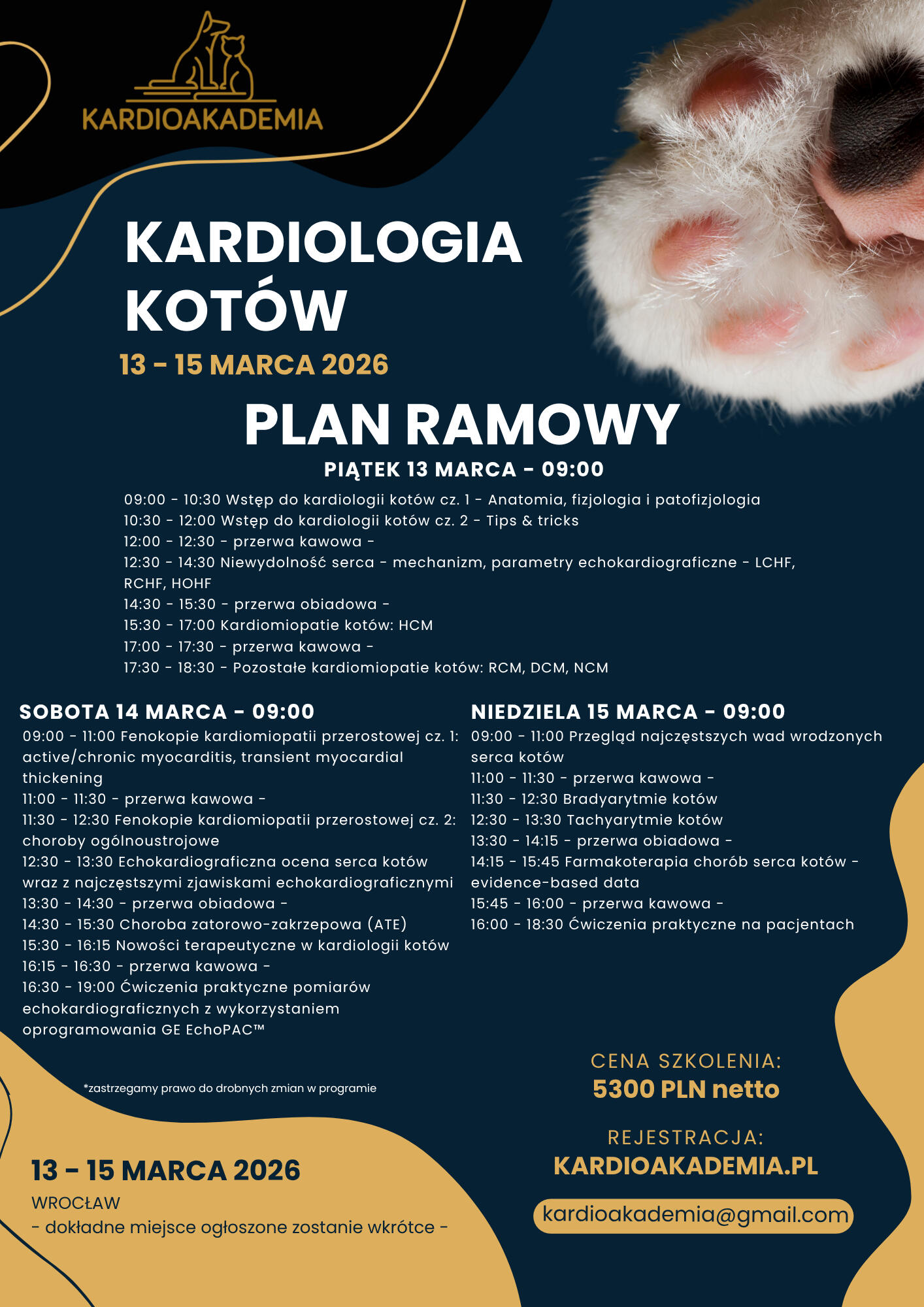 Nadchodzące wydarzenia:- Kardiologia kotów (edycja 2) - 13 - 15 marca 2026